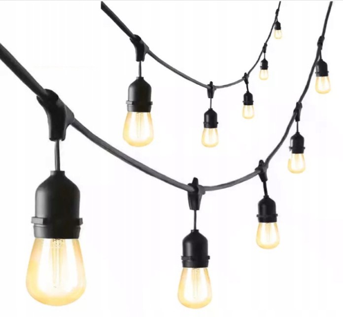 Girlanda Ogrodowa Zewnętrzna Świetlna 20 metrów + 20 Żarówek LED Lampki na Taras Ogród Balkon